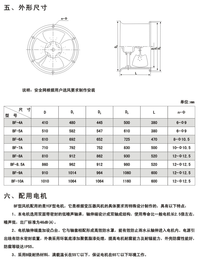 BF型風機配用的是YCF型電機,它是根據(jù)變壓器風機的具體要求而特殊設(shè)計制作的,具有以下特點: