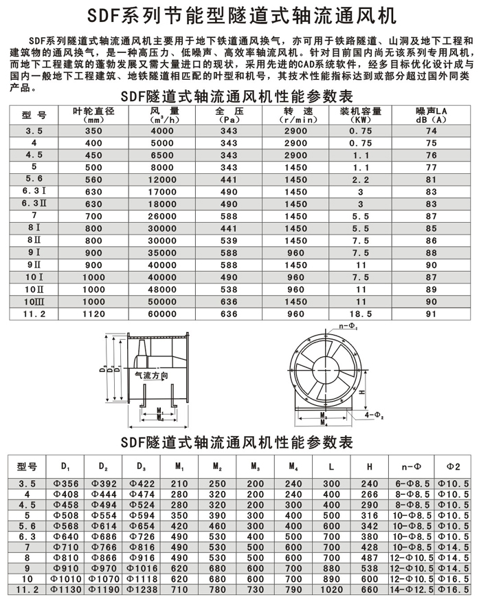 SDF系列節(jié)能型隧道式軸流通風(fēng)機(jī)主要用于地下鐵通風(fēng)換氣,亦可用于鐵路隧道、山洞及地下工程和建筑物的通風(fēng)換氣,是一種高壓力、低噪聲、高效率軸流風(fēng)機(jī)。針對(duì)目前國內(nèi)尚無該系列專用風(fēng)機(jī),而地下工程建筑的蓬勃發(fā)展又需大量進(jìn)口的現(xiàn)狀,采用先進(jìn)的CAD系統(tǒng)軟件,經(jīng)多目標(biāo)優(yōu)化設(shè)計(jì)成與國內(nèi)一般地下工程建筑、地鐵隧道相匹配的葉型和機(jī)號(hào),其技術(shù)性能指標(biāo)達(dá)到或部分超過國外同類產(chǎn)品。 |