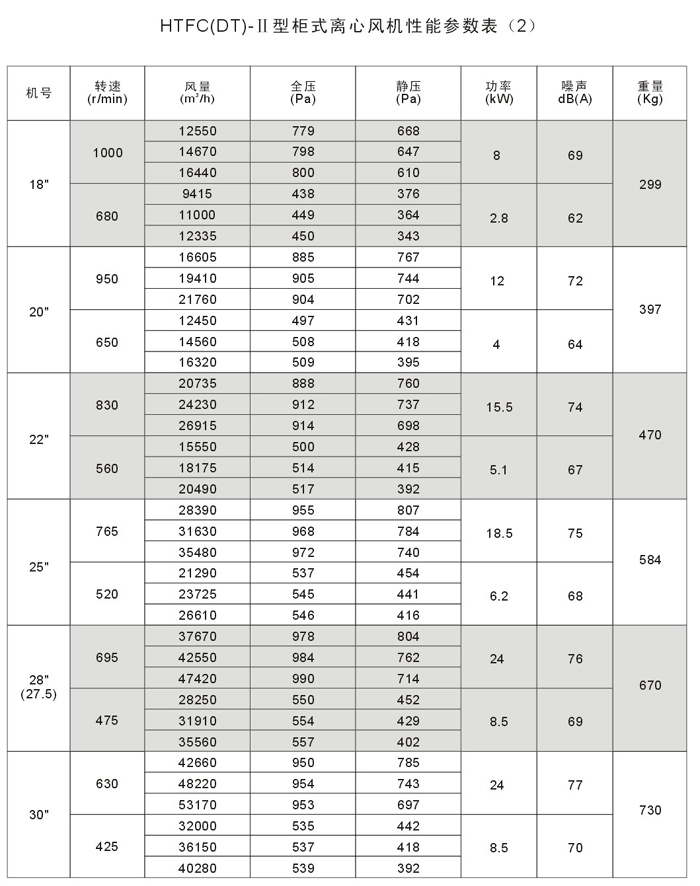 二、 HTFC(DT)系列低噪聲消防(兩用)柜式離心風(fēng)機(jī)特點